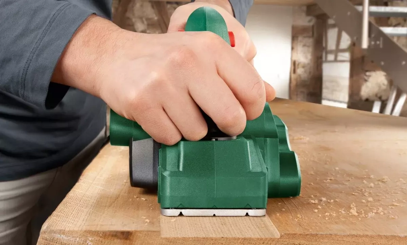 Кроме этого, одним из важных критериев выбора деревообрабатывающего инструмента является ширина лезвий. Если вам нужна модель для использования в быту, тогда подойдет нож шириной 82мм, а для профессиональных целей лучше купить электрорубанок на 110мм или 150мм с лезвиями из быстрорежущей стали HSS, которые позволяют обрабатывать доску шириной от 100мм.