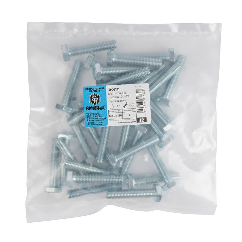 Болт M10×50 мм от бренда Steelrex – это надежный элемент крепления со стандартом качества DIN 933 и классом прочности 5.8. Имеет шестигранную форму головки размером 17 мм и шаг резьбы 1.5 мм, что обеспечивает легкую установку и высокий уровень фиксации. Подходит как для профессионального использования благодаря универсальности, так и для бытового ремонта за счет минимального количества для заказа всего 1 штука.
