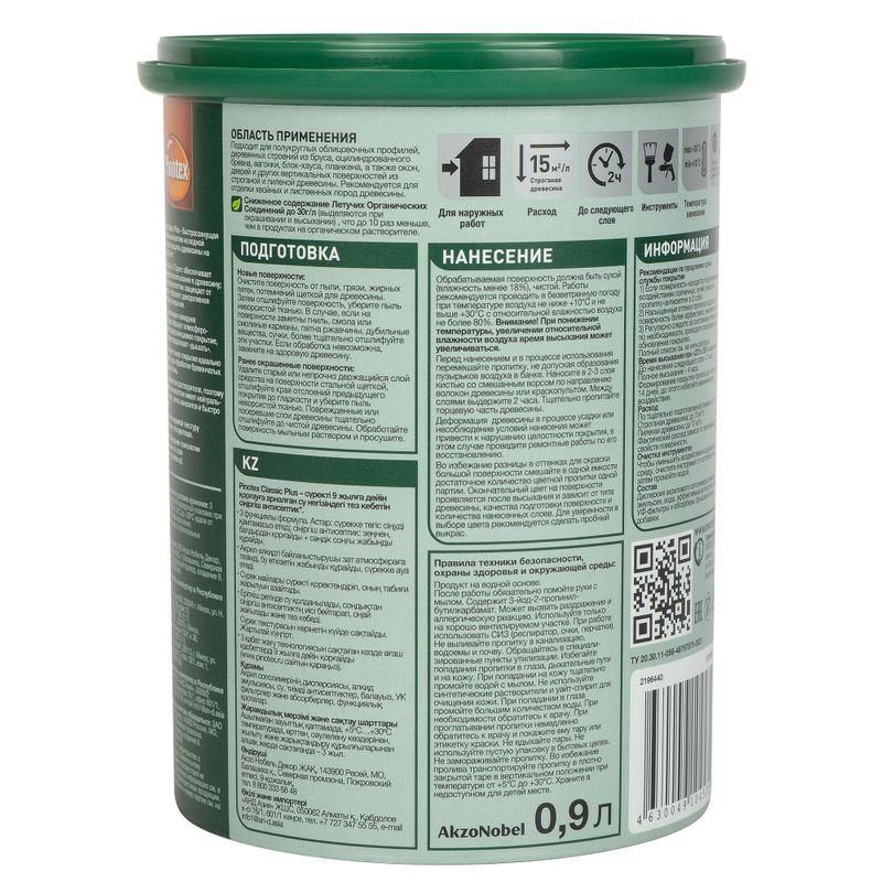 Pinotex Classic Plus — уникальное декоративно-защитное покрытие «3 в 1» для деревянного фасада: защита от ультрафиолета, грибка, плесени и насекомых. Быстро сохнет, легко колеруется, отталкивает воду и грязь. Лаконичное полуматовое покрытие подчеркивает природную красоту древесного рисунка. Удобен в нанесении (кисть, валик), разбавляется водой. Одного баллона достаточно для обработки до 15 кв.м.струганной поверхности.