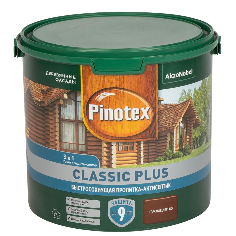 Характеристики товара «Декоративно-защитное средство для дерева 3 в 1 Pinotex Classic Plus красное дерево полуматовое 2,5 л»