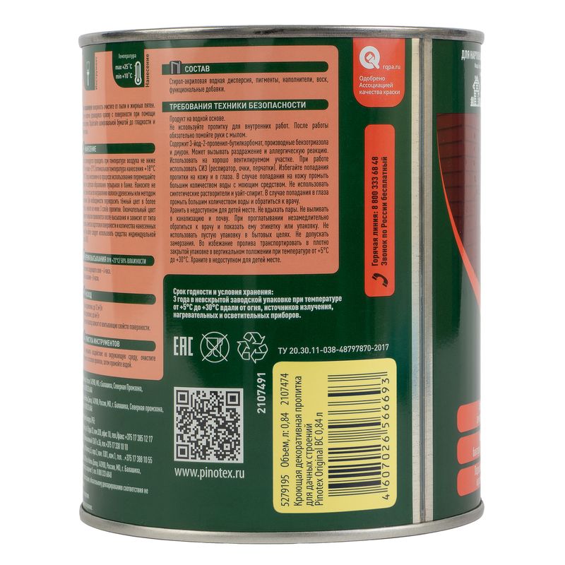 Характеристики товара «Декоративно-защитное средство для дерева Pinotex Original база C полуматовое 0,84 л»