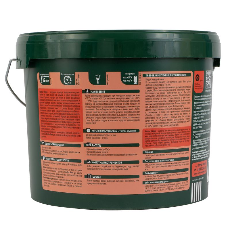 Pinotex Original – это профессиональное декоративно-защитное покрытие для дерева, обеспечивающее надёжную защиту от ультрафиолета, влаги, гнили, грибка, плесени и синевы. Подходит исключительно для наружной отделки из дерева (расход до 12 м²/л). Полуматовый финиш подчеркивает текстуру древесины, а акриловая основа обеспечивает быстрое высыхание и отличную колеруемость. Покрытие легко наносится кистью, отталкивает воду, долговечно и экологично (разбавляется водой). Срок хранения — 3 года.