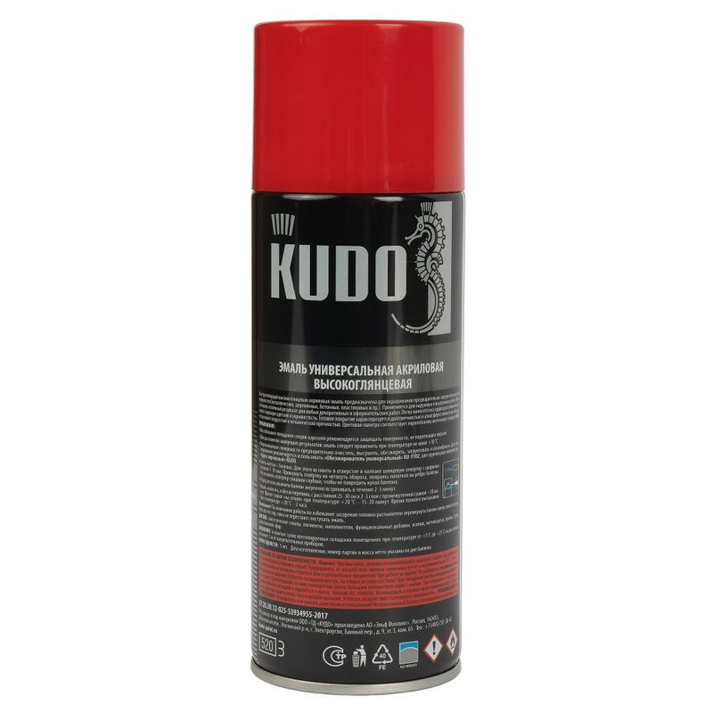 Характеристики товара «Эмаль универсальная акриловая KUDO RAL 3002 темно-красная высокоглянцевая 520 мл»