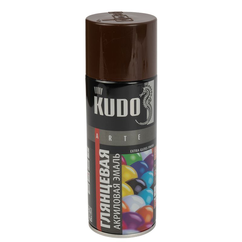 - Эмаль универсальная акриловая KUDO RAL 8017 коричневая высокоглянцевая 520 мл
