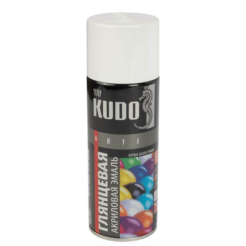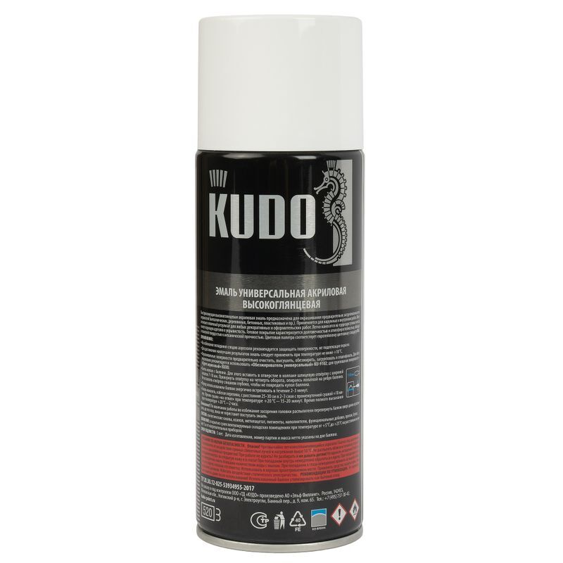 - Эмаль универсальная акриловая KUDO RAL 9003 белая высокоглянцевая 520 мл