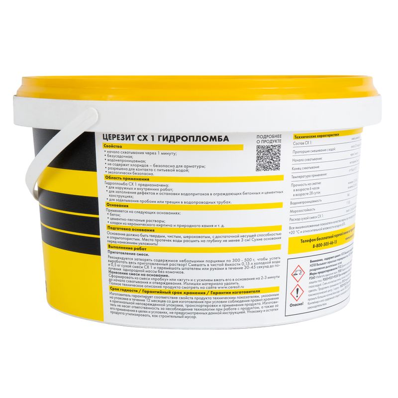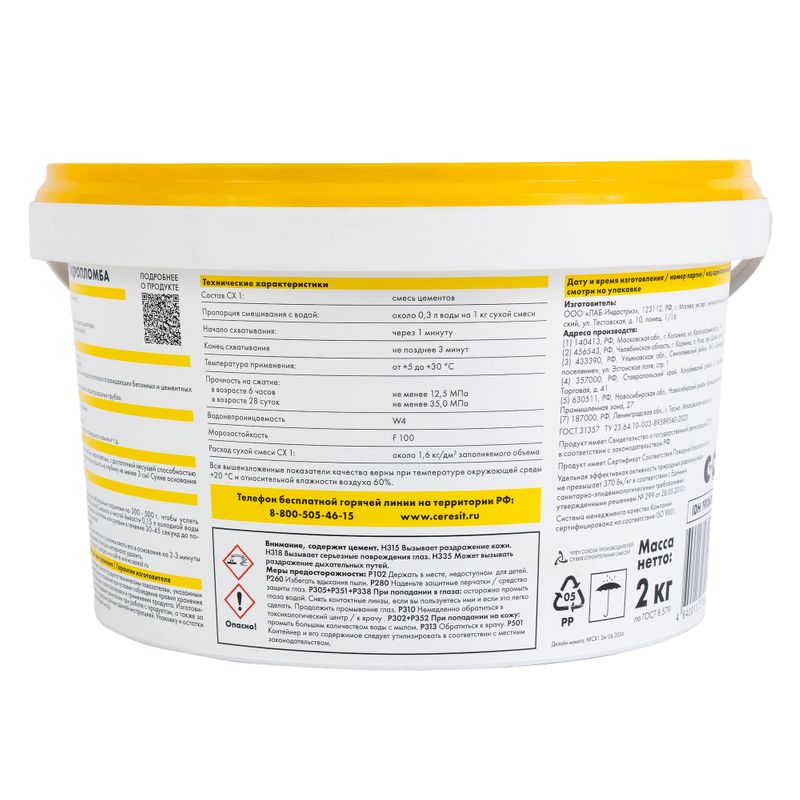 Характеристики товара «Гидроизоляция цементная Церезит Гидропломба CX1 2 кг»