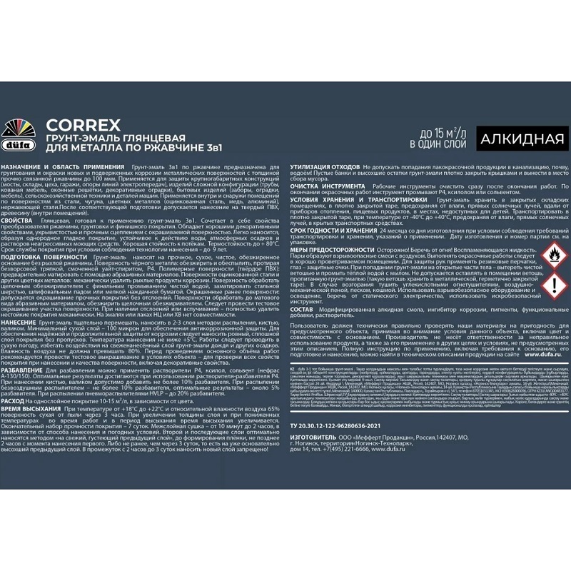 - Грунт-эмаль по ржавчине 3 в 1 Dufa CORREX RAL 9010 белый глянцевый 0.75 л