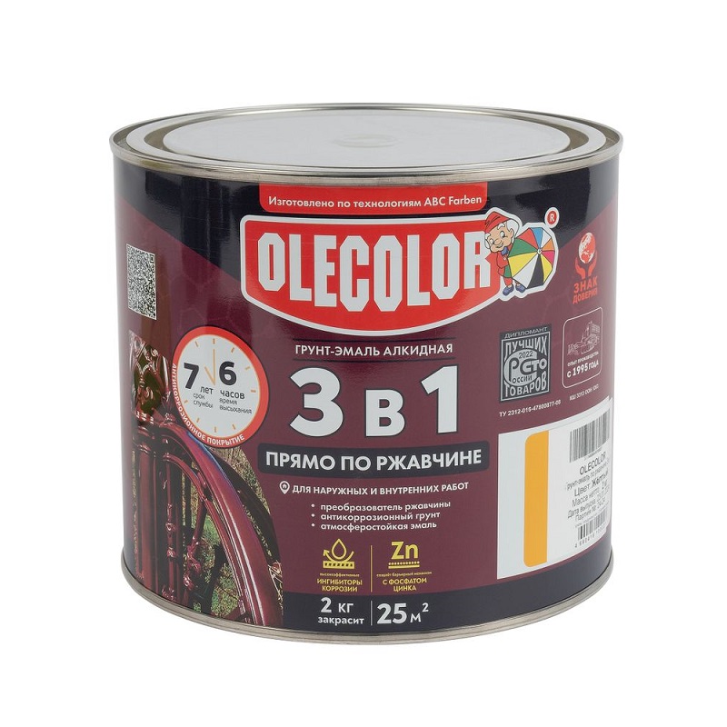 Характеристики товара «Грунт-эмаль по ржавчине желтая Olecolor 2 кг»