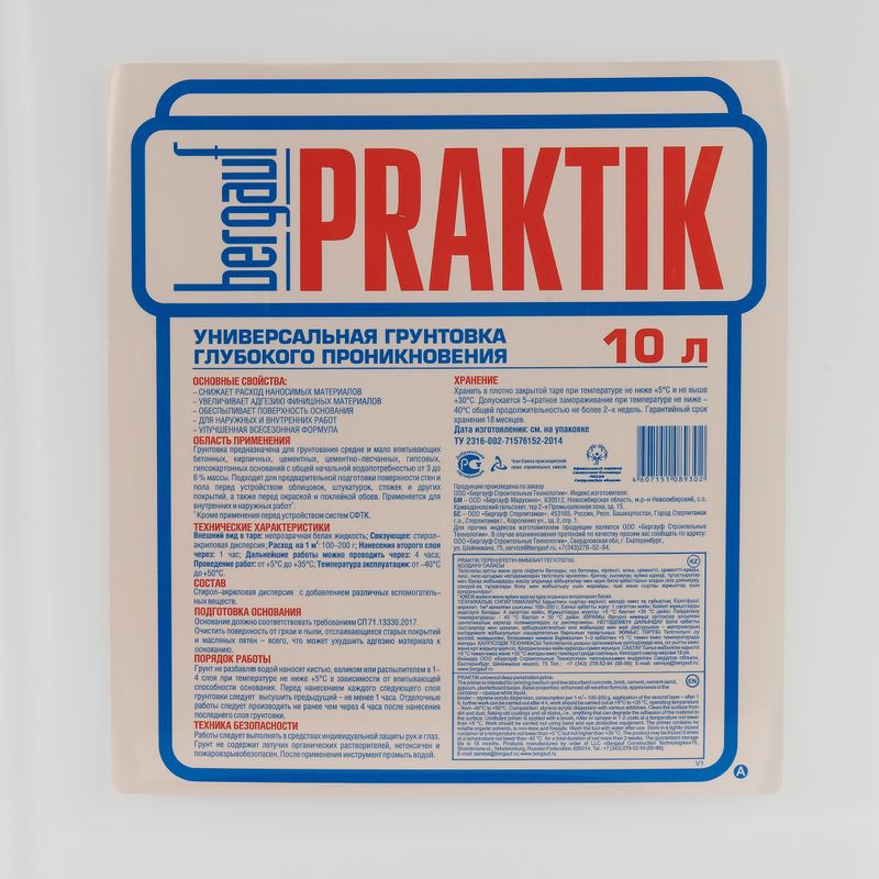 - Грунтовка Бергауф Praktik глубокого проникновения 10 л