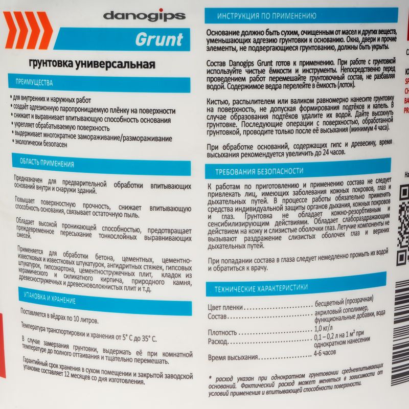 Характеристики товара «Грунтовка Dano Grunt глубокого проникновения 10 л»