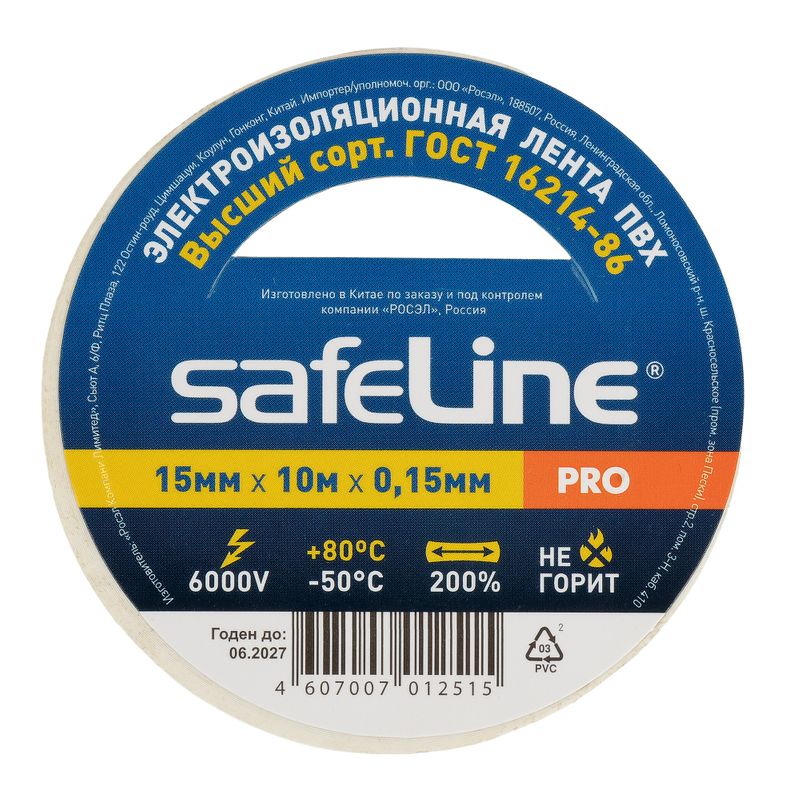 Белая изолента Safeline шириной 15 мм и толщиной 0,15 мм — надежное решение для изоляции проводов и кабелей. В рулоне длиной по 10 метров (упаковка содержит 10 рулонов) вы получаете оптимальное сочетание качества и удобства использования. Изготовленная из прочного материала – ПВХ, данная лента обеспечивает высокую адгезию и устойчивость к механическим повреждениям и агрессивным средам. Идеально подходит как профессионалам, так и домашним мастерам для быстрого ремонта и надежной электроизоляции.
