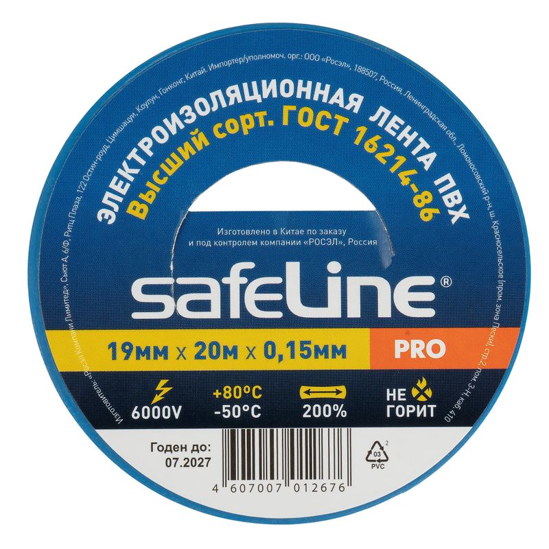 Характеристики товара «Изолента синяя 19 мм 20 м Safeline»