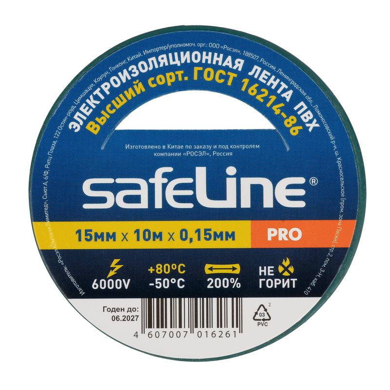 - Изолента зеленая 15 мм 10 м Safeline