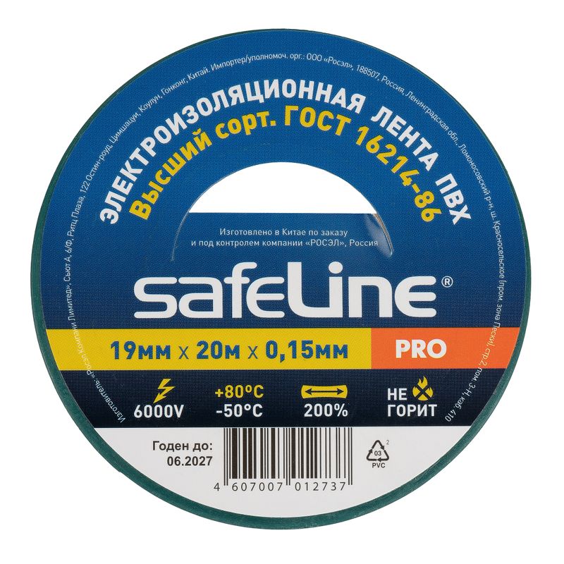 Характеристики товара «Изолента зеленая 19 мм 20 м Safeline»