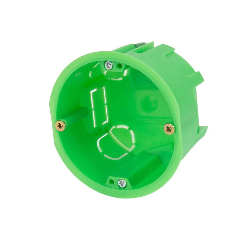 Установочная коробка Hegel диаметром 68х45 мм идеально подходит для монтажа электроарматуры в гипсокартонные стены. Благодаря пластиковой конструкции она обеспечивает надёжность и долговечность соединений при температуре окружающей среды от -25 до +40°C. Защита степени IP30 предотвращает попадание пыли и мелких частиц. Зеленая окраска облегчает идентификацию проводки, упрощая монтажные работы. Удобная форма круга позволяет легко интегрироваться даже в сложные архитектурные решения.