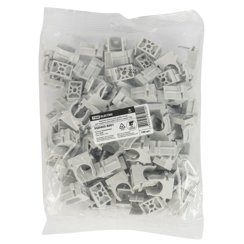 - Крепеж-клипса для трубы 16 мм прямого монтажа серая 100 шт