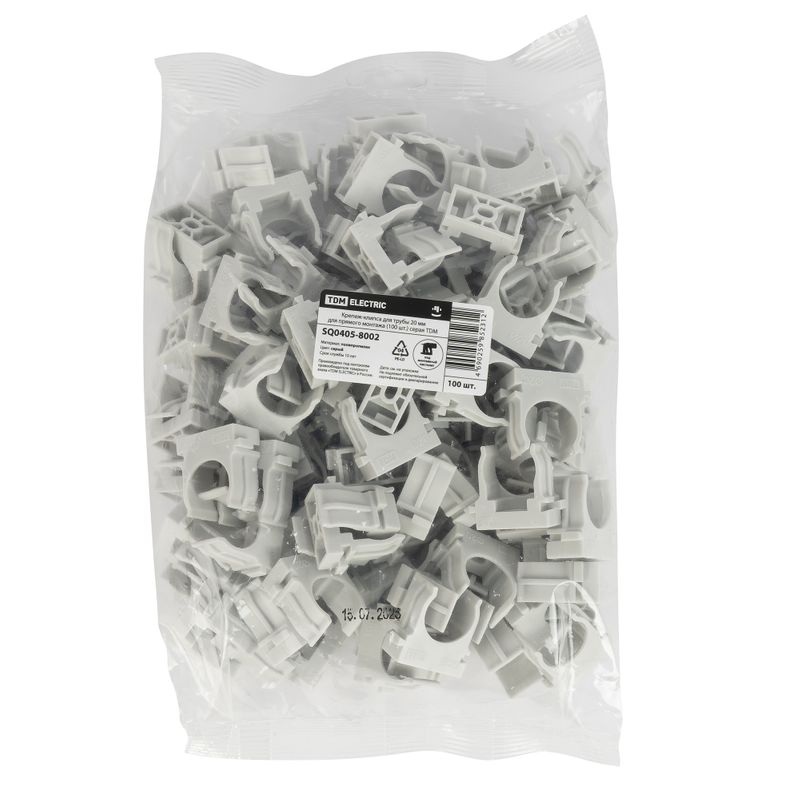 - Крепеж-клипса для трубы 20 мм прямого монтажа серая 100 шт
