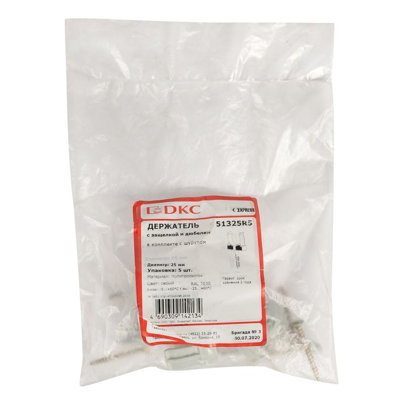 Характеристики товара «Крепеж-клипса для трубы 25 мм дюбель с винтом 5 шт ДКС»
