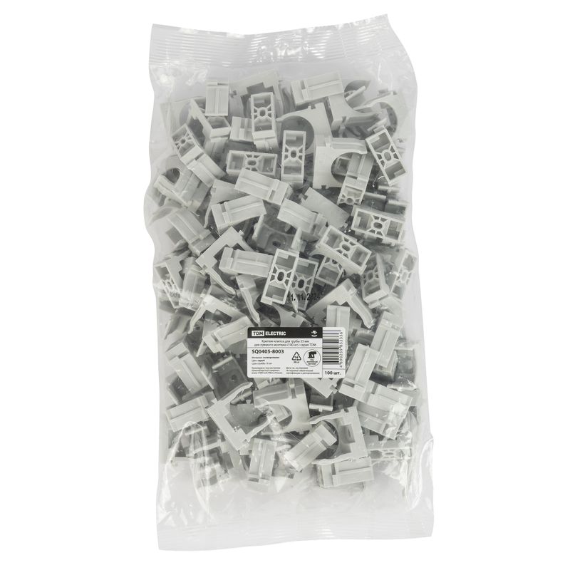 - Крепеж-клипса для трубы 25 мм прямого монтажа серая 100 шт