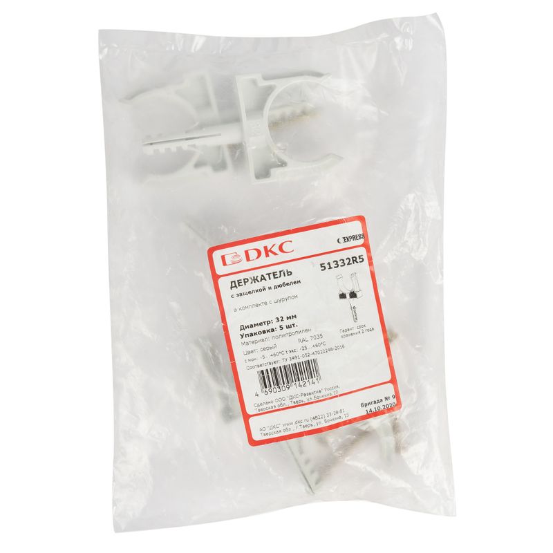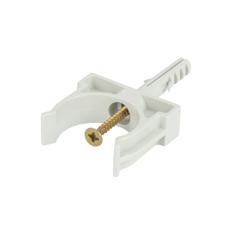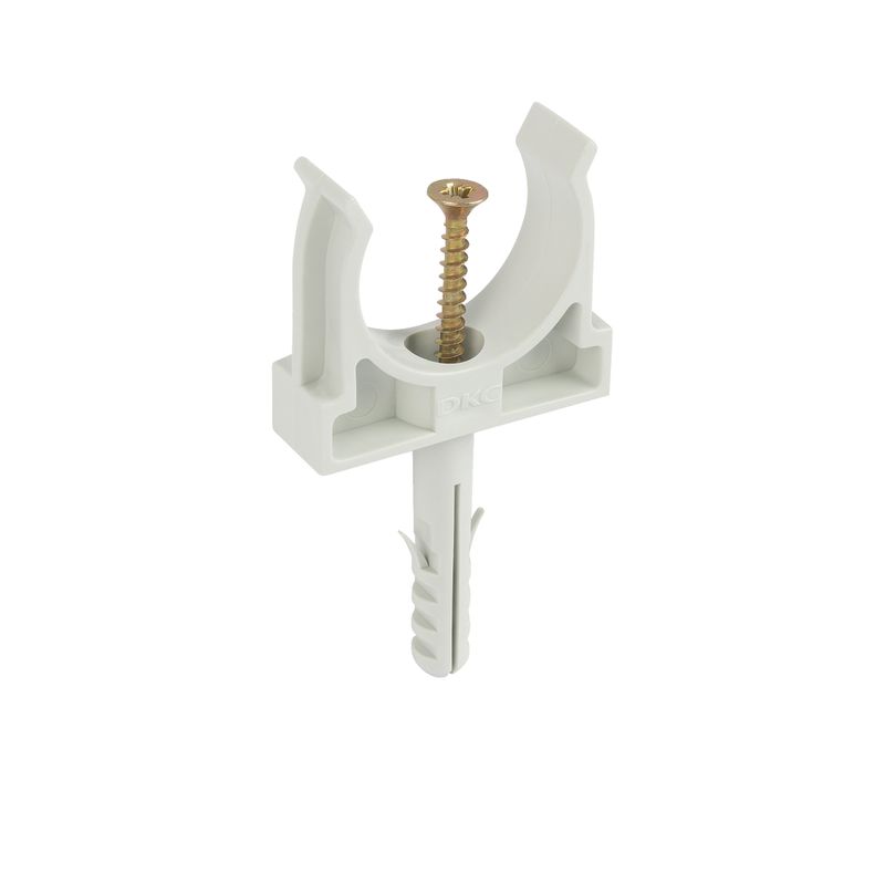 - Крепеж-клипса для трубы 32 мм дюбель с винтом 5 шт ДКС
