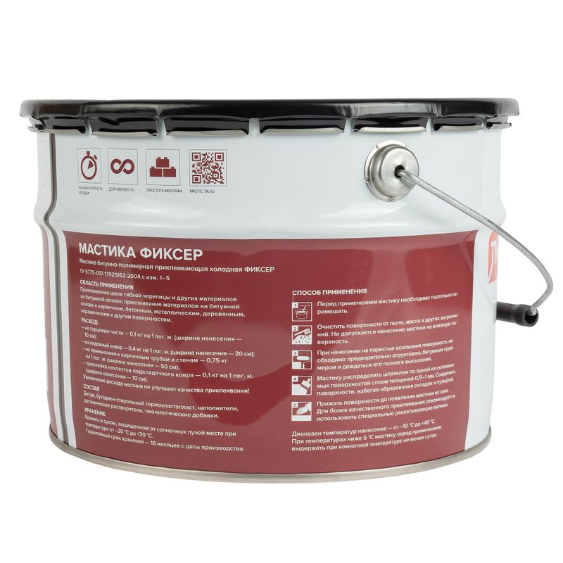 Характеристики товара «Мастика битумно-полимерная для гибкой черепицы Технониколь №23 Фиксер 12 кг»