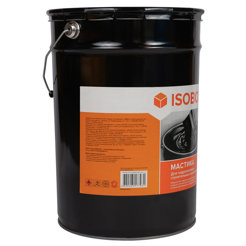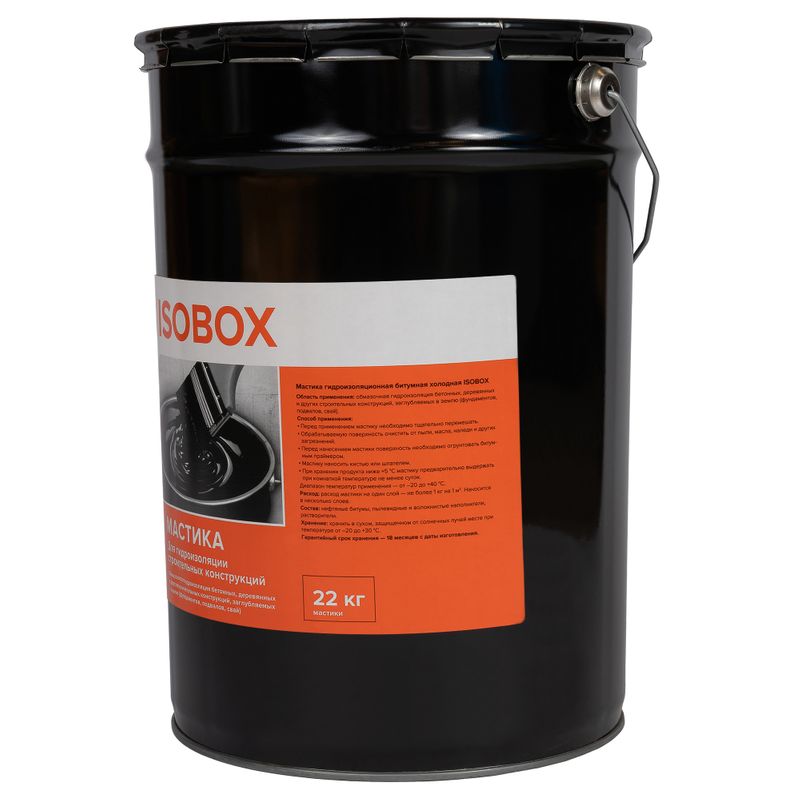 Характеристики товара «Мастика гидроизоляционная для фундамента Изобокс 22 кг»