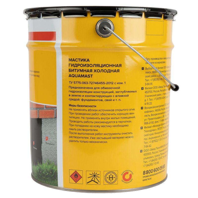 Характеристики товара «Мастика гидроизоляционная AquaMast Фундамент 18 кг»