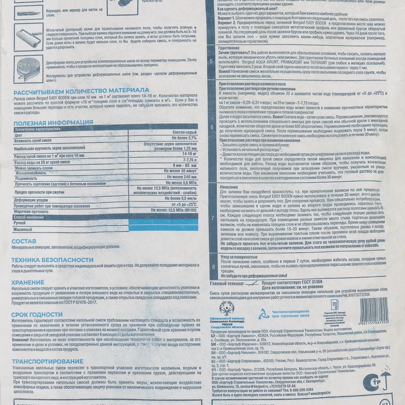 Характеристики товара «Наливной пол Бергауф Easy Boden самовыравнивающийся 25 кг»