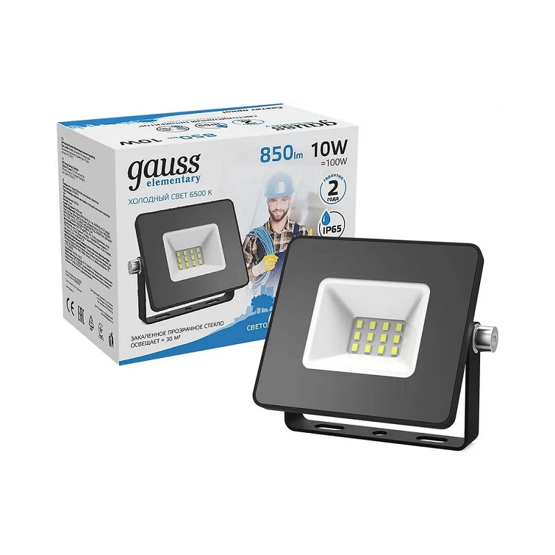 Характеристики товара «Прожектор светодиодный уличный 10Вт 4000К IP65 нейтральный белый свет Gauss»