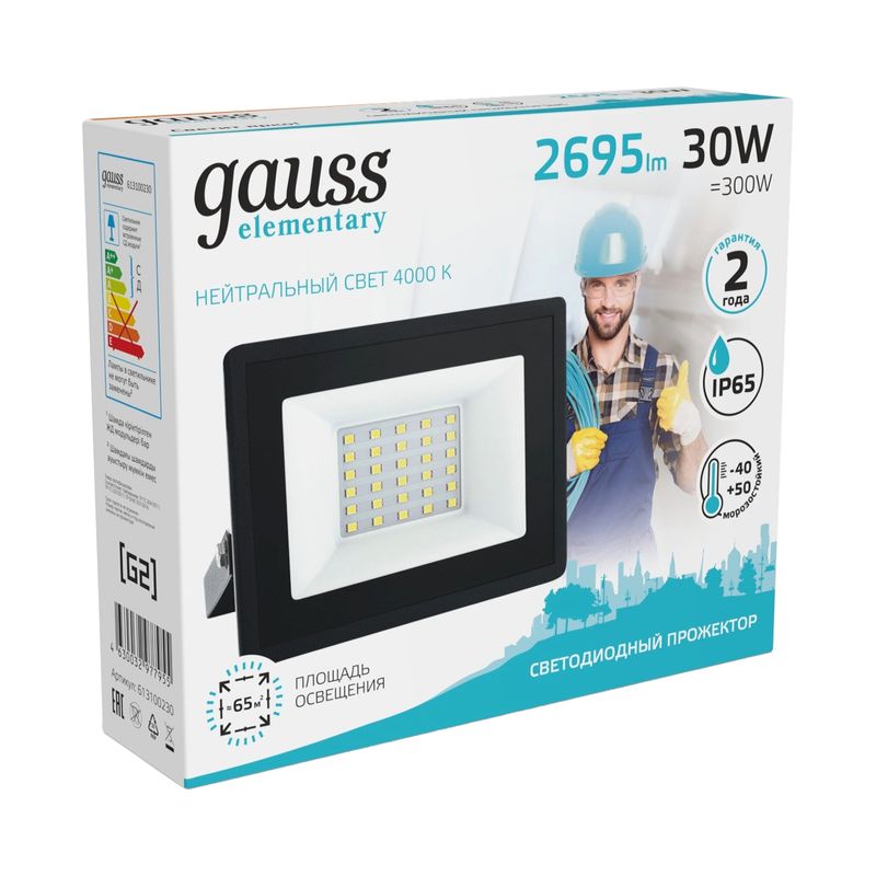 - Прожектор светодиодный уличный 30Вт 4000К IP65 нейтральный белый свет Gauss