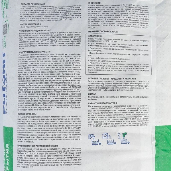 Характеристики товара «Ровнитель для пола Плитонит Р3 финишный 20 кг»