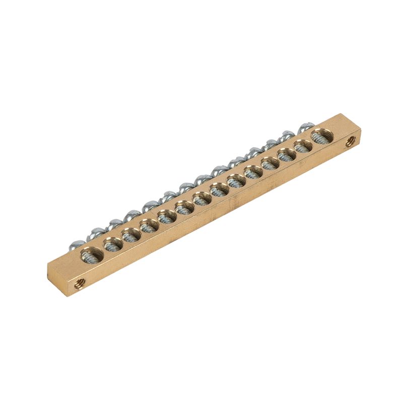 - Шина ноль-земля 14 отверстий без изолятора крепеж по краям 6х9 мм