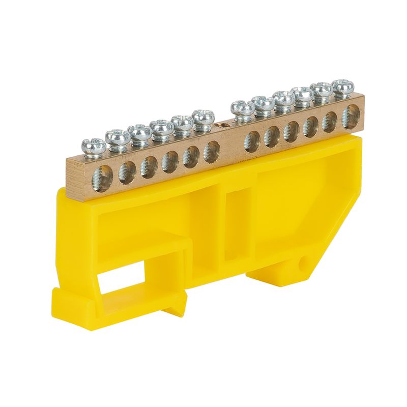 - Шина нулевая 12 отверстий, изолятор на DIN-рейку желтый 6х9 мм