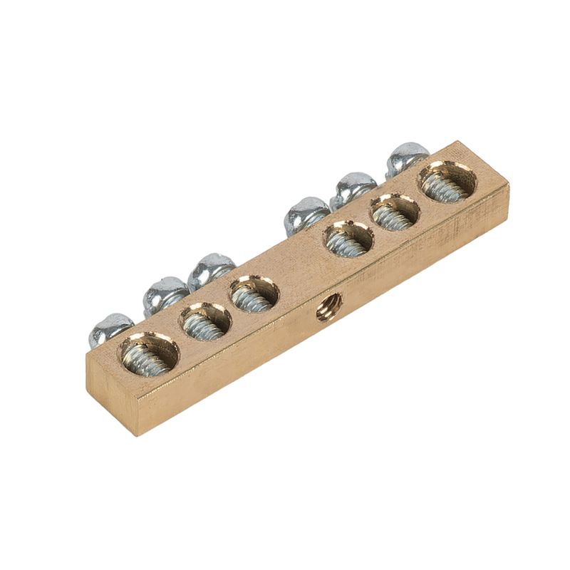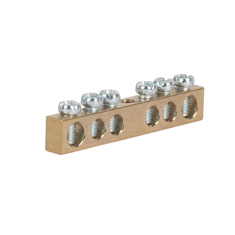 - Шина нулевая 6 отверстий, без изолятора, крепеж по центру, 6х9 мм