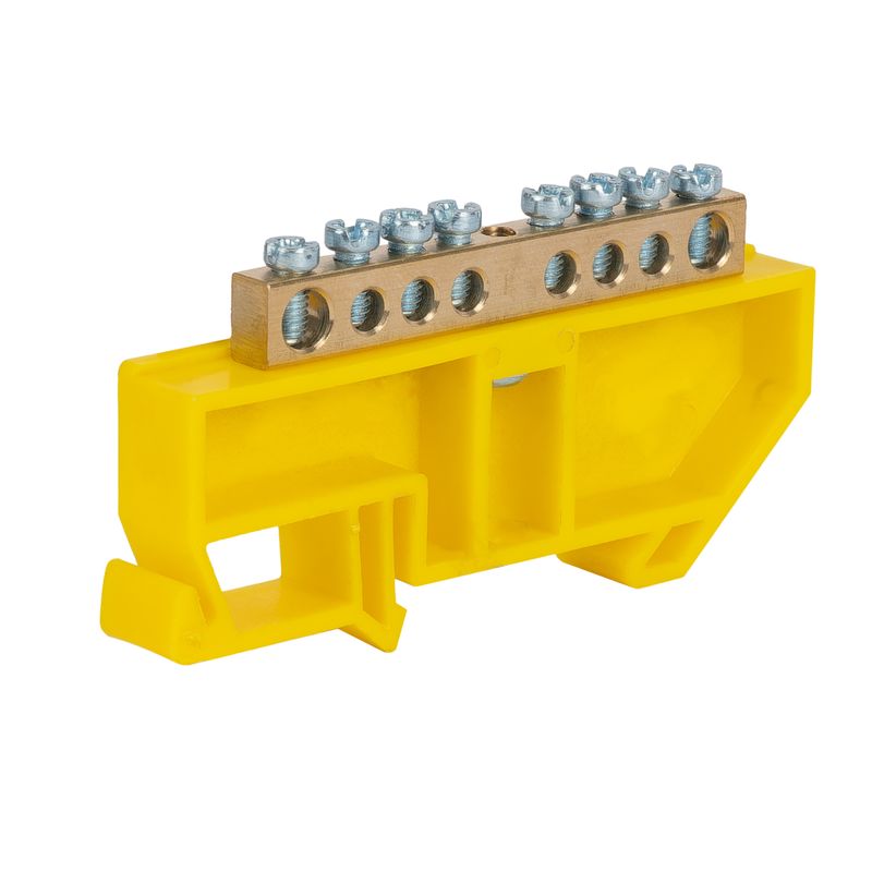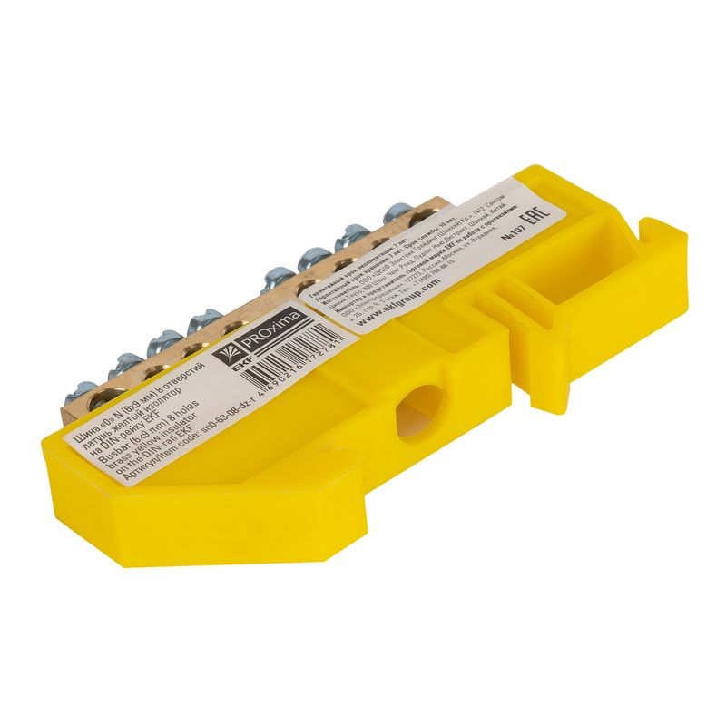 - Шина нулевая 8 отверстий, изолятор на DIN-рейку желтый 6х9 мм
