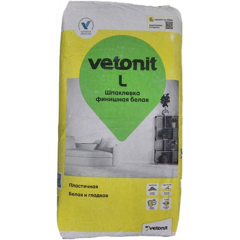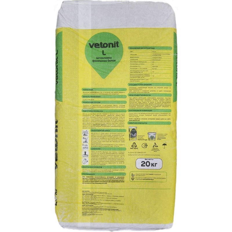 Характеристики товара «Шпаклевка полимерная Ветонит L финишная 20 кг»