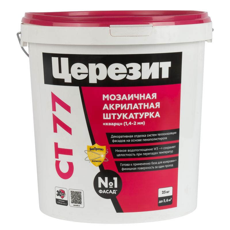 Декоративная штукатурка Церезит CT77 — идеальный выбор для стильного оформления интерьеров и фасадов благодаря зернистой фактуре и возможности колеровки. Подходит для любых оснований (бетон, гипс, штукатурки), обеспечивает прочное покрытие толщиной до 2 мм со свойствами ударостойкости, морозостойкости (-50°C…+70°C), паропроницаемости и гидрофобности. Быстро сохнет (за 30 минут) и легко наносится вручную. Экономичный расход до 4,5 кг/м² позволяет сократить затраты.