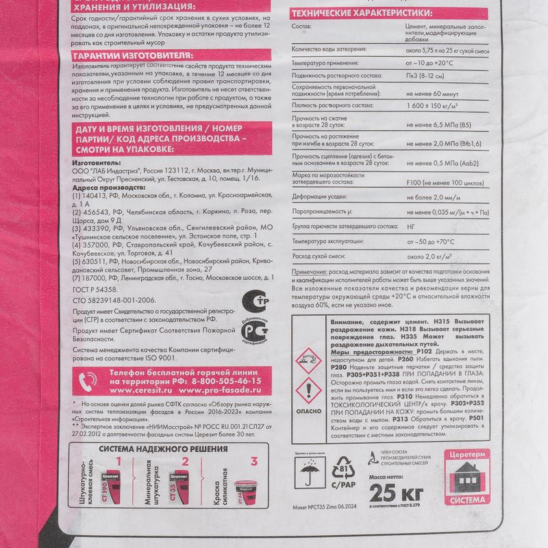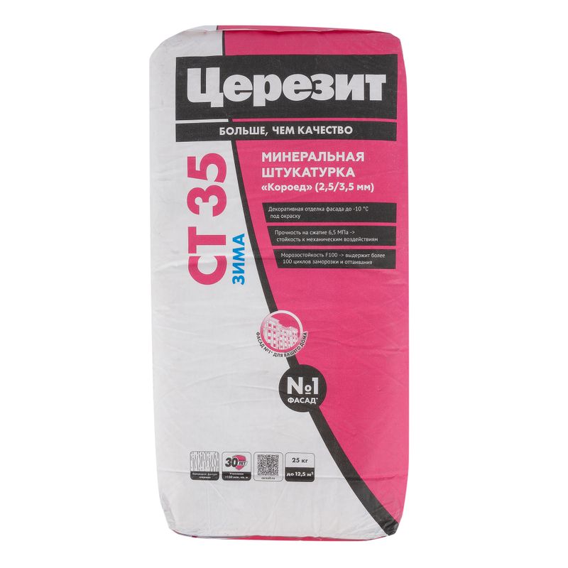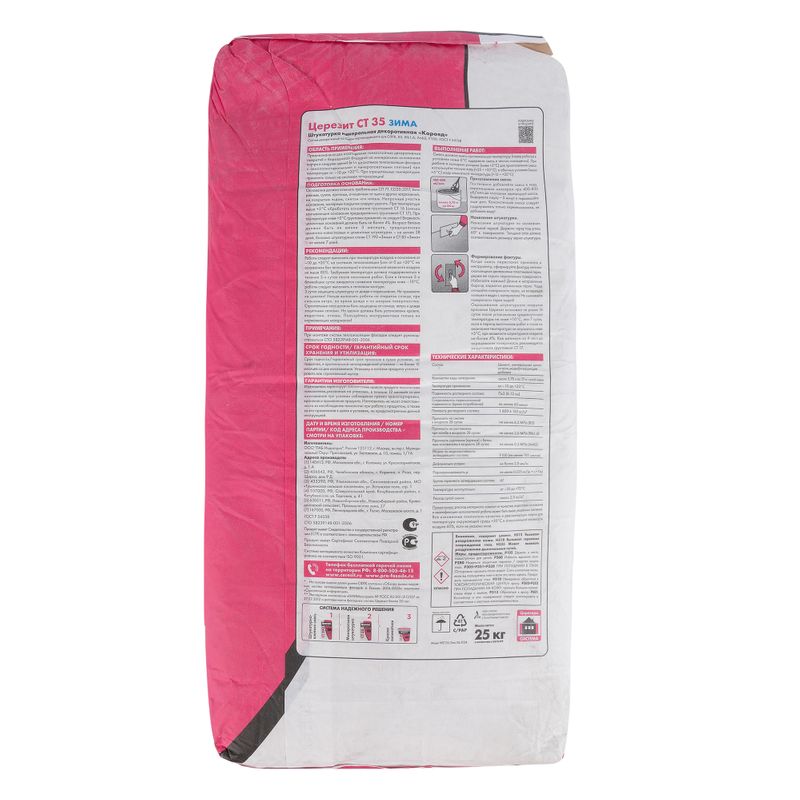 Характеристики товара «Штукатурка декоративная Церезит CT 35 короед 2,5 мм зима 25 кг»