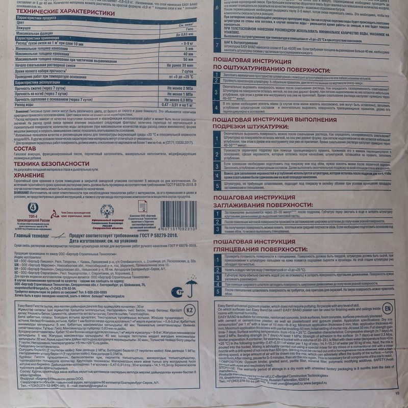 Характеристики товара «Штукатурка гипсовая Бергауф Easy Band 30 кг»