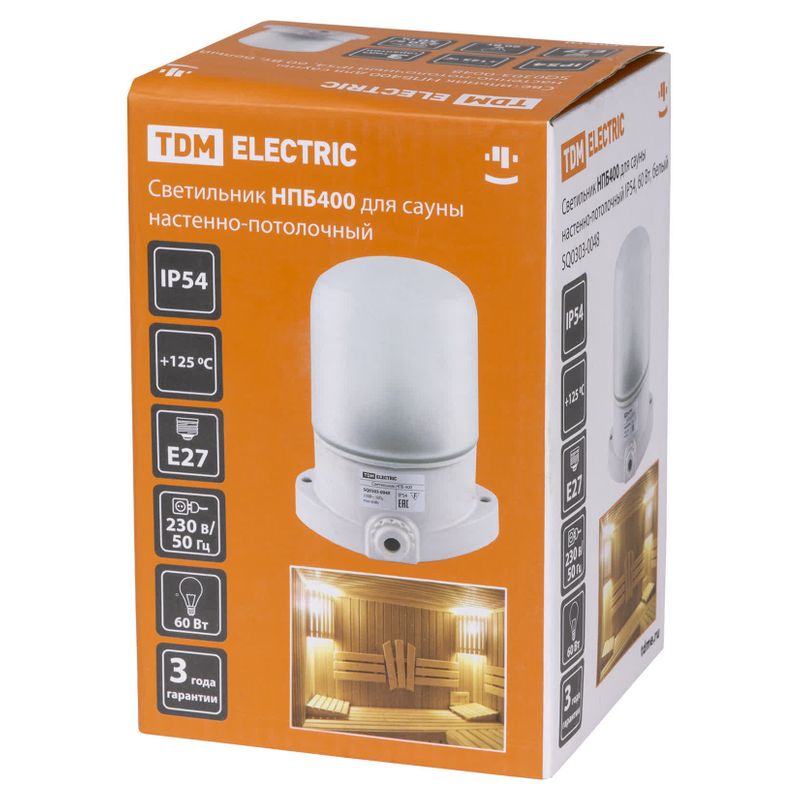 Характеристики товара «Светильник настенно-потолочный для сауны TDM НПБ400 IP54 60Вт»