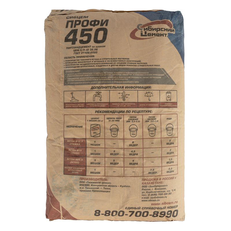 Характеристики товара «Цемент ЦЕМ II/А-Ш 32,5Б (ПЦ-400 Д20) Топки 25 кг»