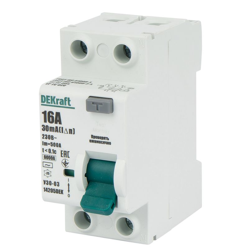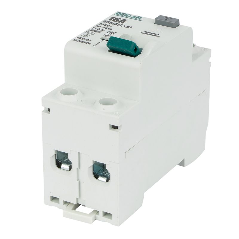 - УЗО двухполюсное 16А 30мА тип AC DEKraft