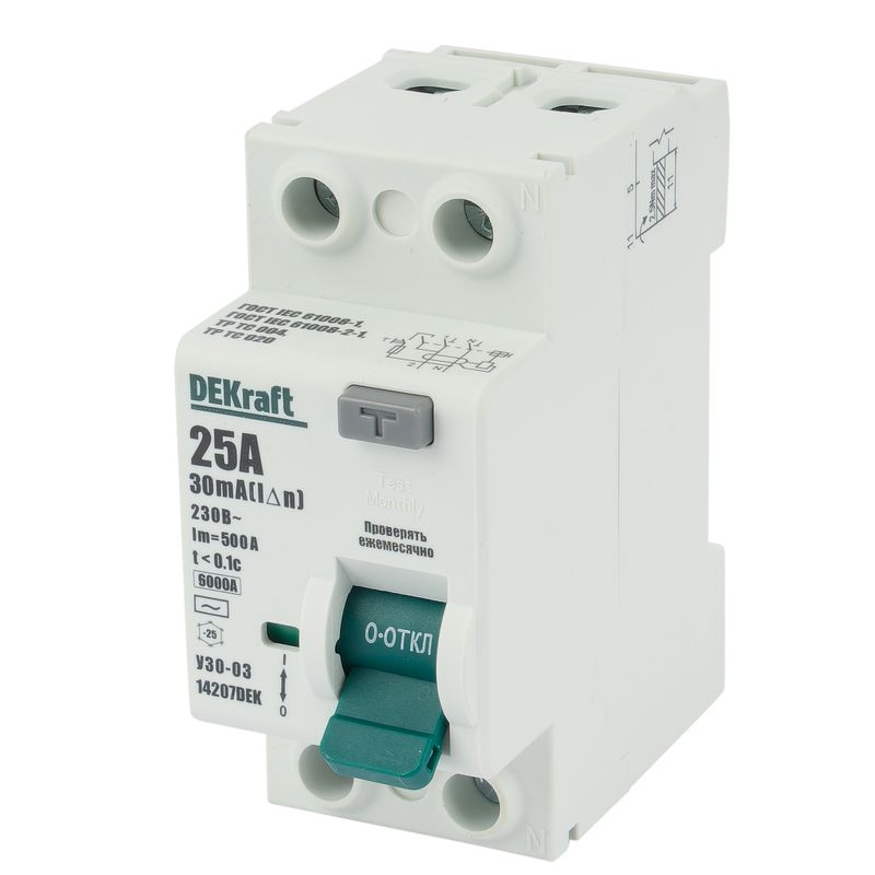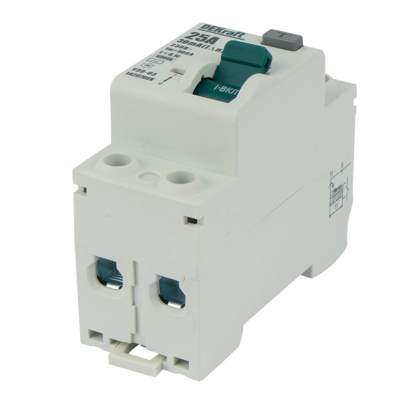 - УЗО двухполюсное 25А 30мА тип AC DEKraft