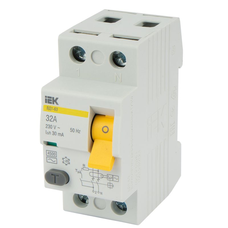 - УЗО двухполюсное 32А 30мA тип АС IEK
